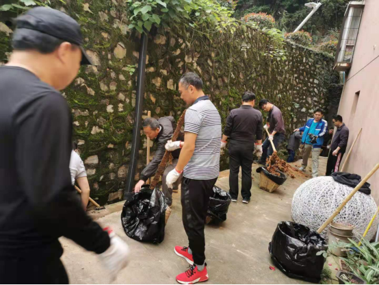 参加活动的党员干部仔细清理了碧桂园5栋的下水沟,挖出了恶臭的污泥和垃圾,清扫了2栋、3栋的小树林,将多年沉积的建筑垃圾、废旧弃物、枯枝枯叶等清理干净。